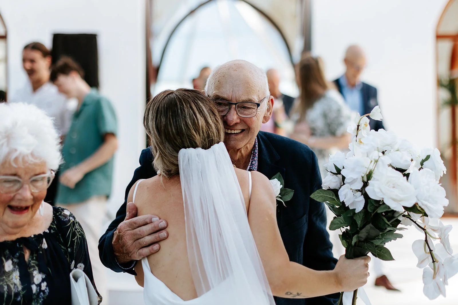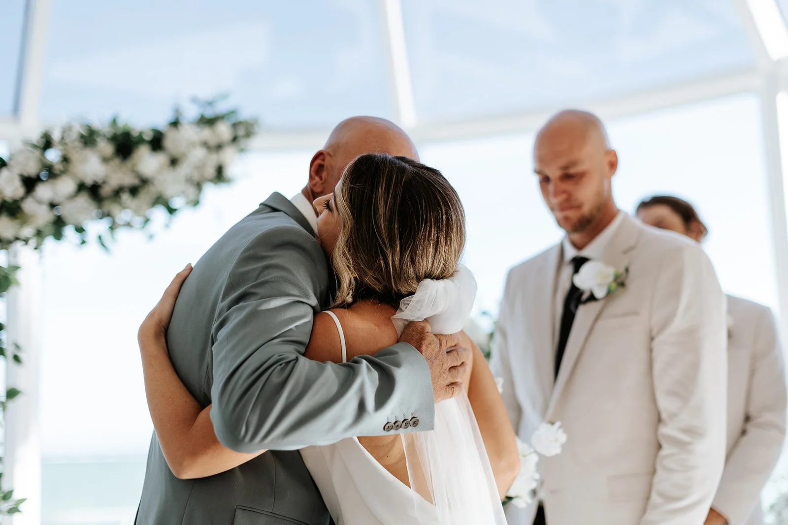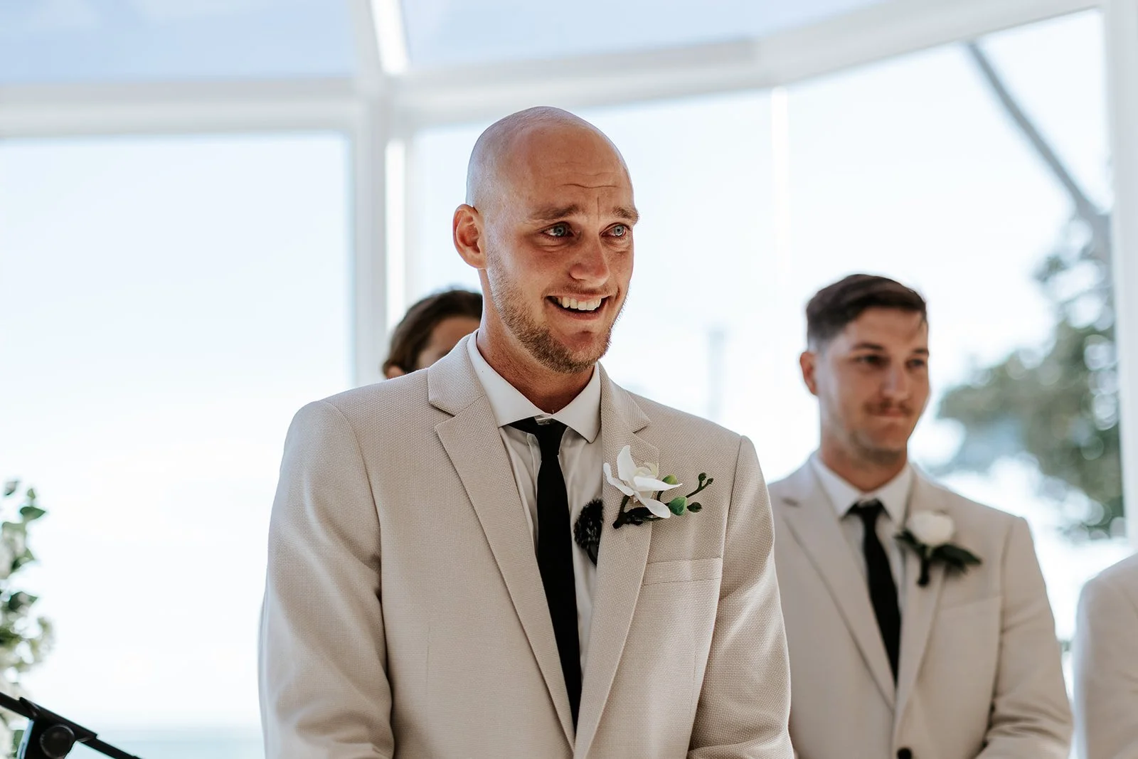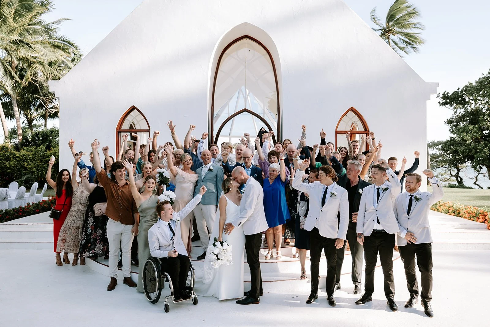 They married in the Seaside Wedding Chapel - a light-filled, glass-fronted chapel overlooking the ocean, surrounded by the people who matter most. The ceremony was full of happy tears, big smiles and so much love, followed by golden-hour portraits along the shoreline and gardens. Then came the big party: laughter, hugs, and a packed dance floor that went late into the night.