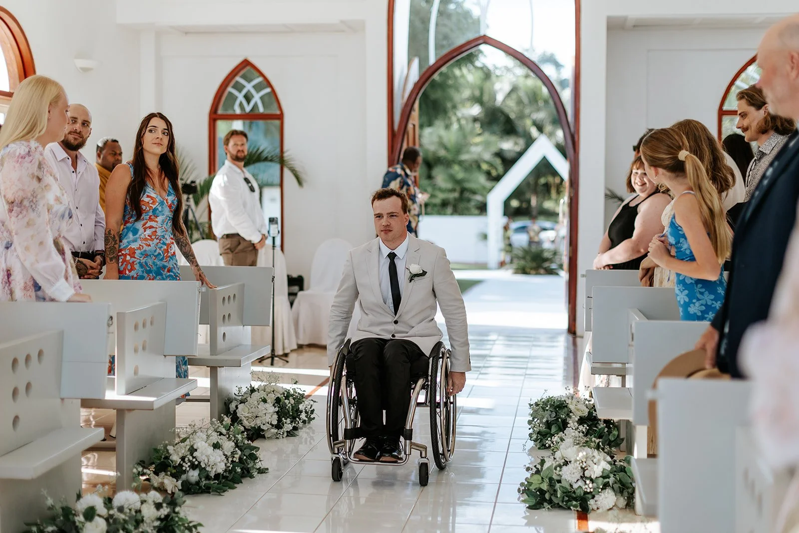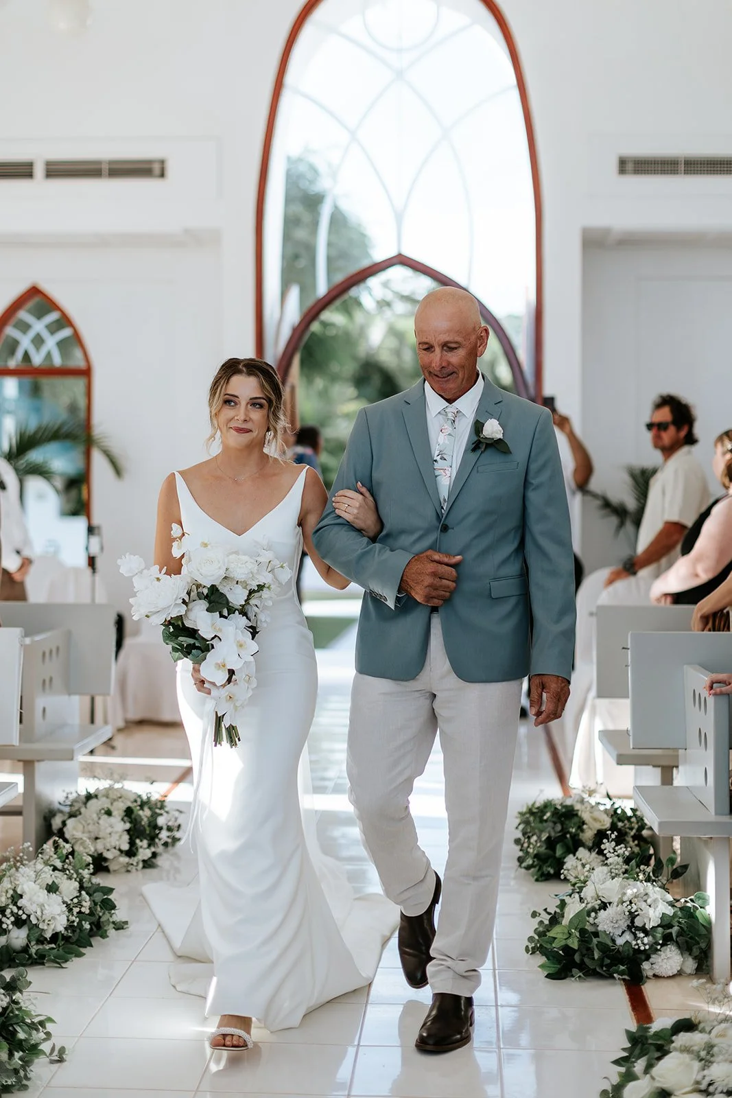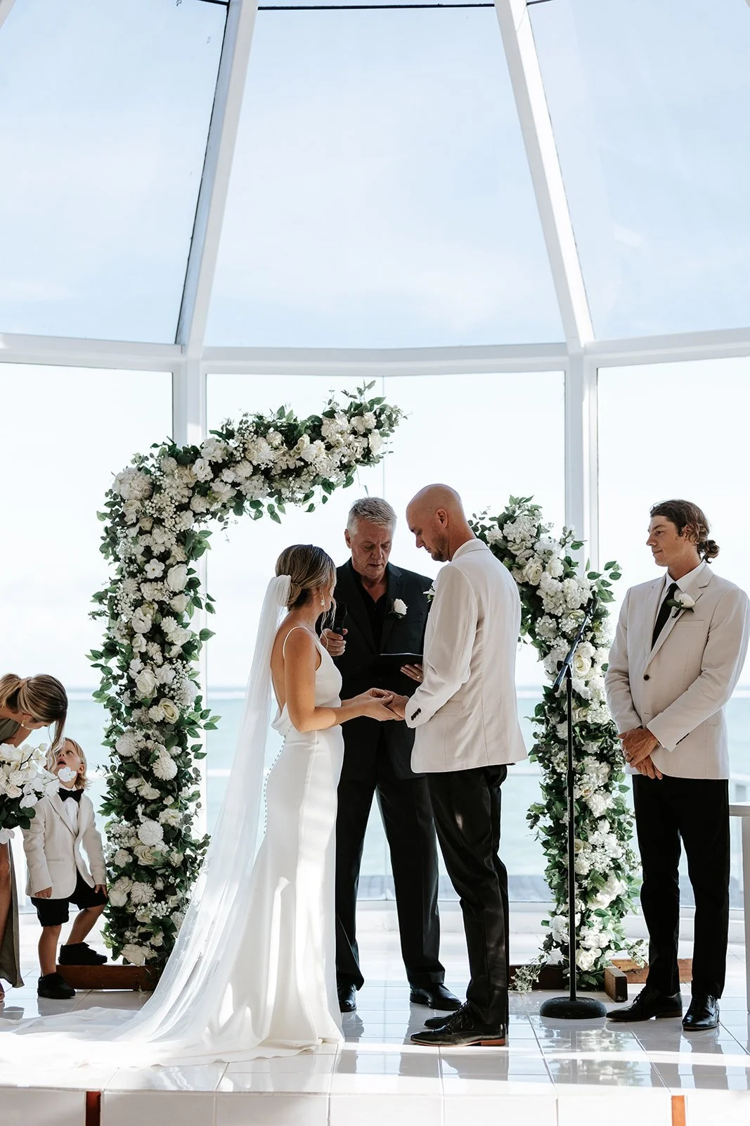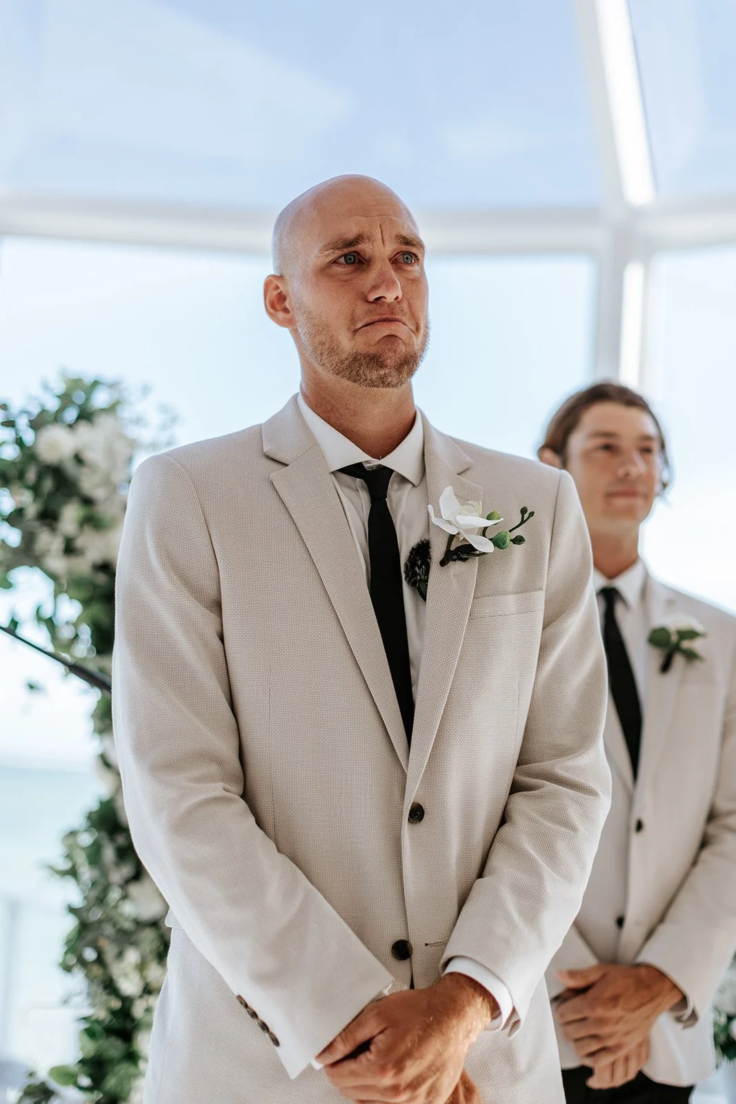 They married in the Seaside Wedding Chapel - a light-filled, glass-fronted chapel overlooking the ocean, surrounded by the people who matter most. The ceremony was full of happy tears, big smiles and so much love, followed by golden-hour portraits along the shoreline and gardens. Then came the big party: laughter, hugs, and a packed dance floor that went late into the night.
