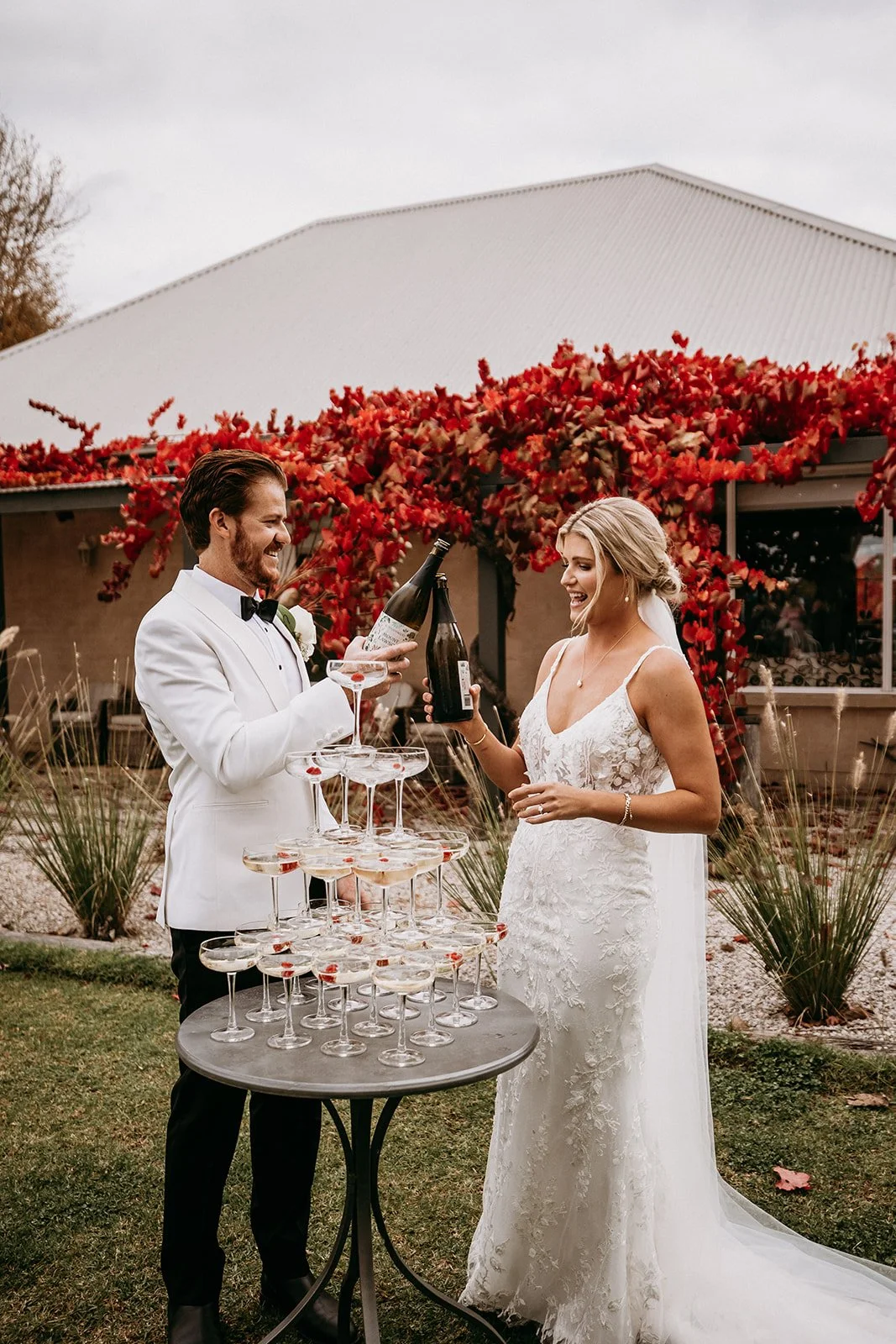 If you dream of a vineyard celebration with rich colour and relaxed country elegance, an autumn wedding at The Vinegrove in Mudgee is hard to beat. As the vines turn amber and the air gets that cosy, late-season glow, this beloved Mudgee wedding venue wraps your day in beautiful light and wide-open views. I photographed this celebration with a documentary approach, keeping things fun and comfortable so the real moments could shine: the hand squeezes, the happy tears, the wild dance moves under the stars.